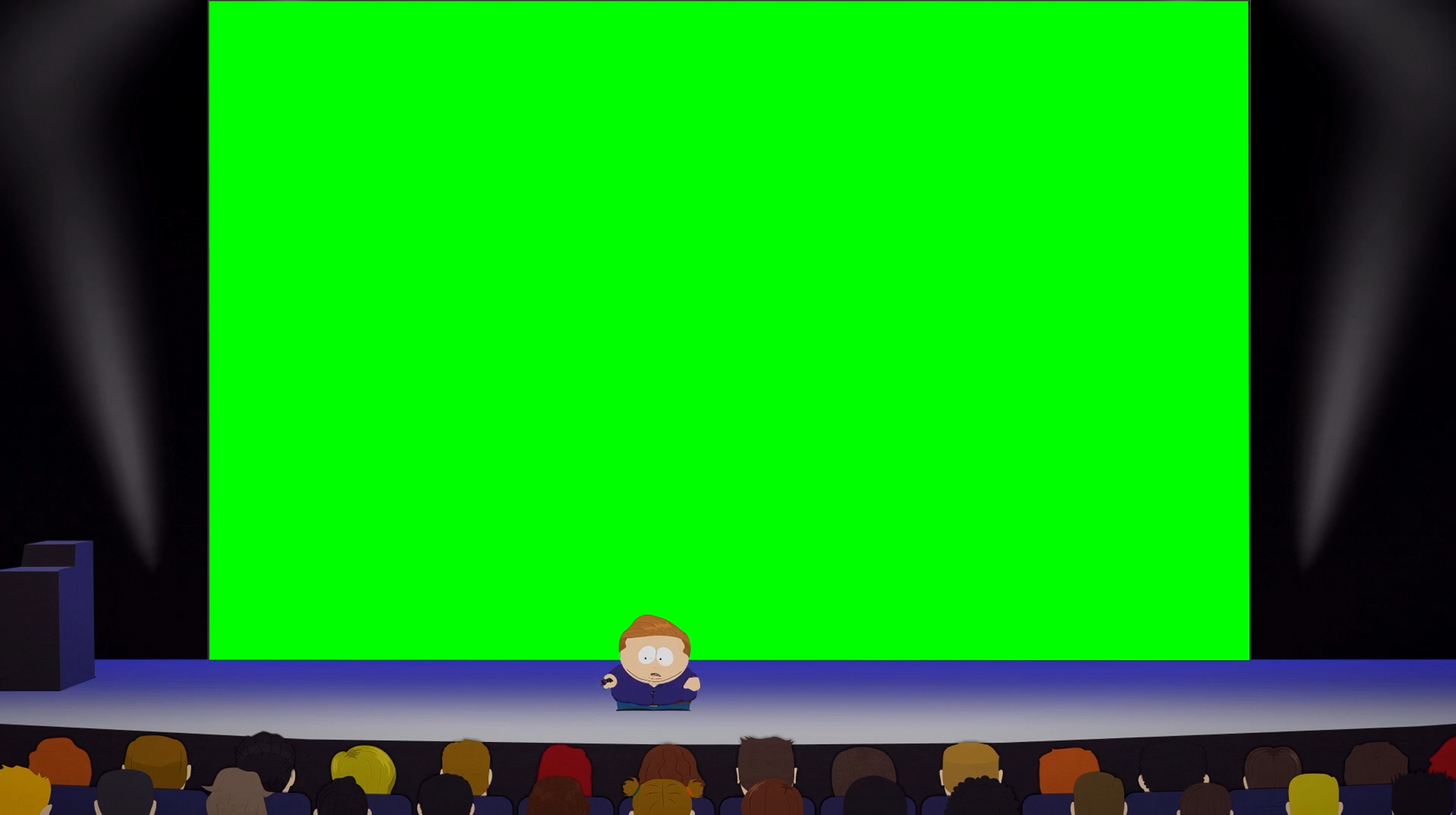 Green Screen Meme Template of Eric Cartman holding a media event to reveal the changes done to their company Washington Redskins