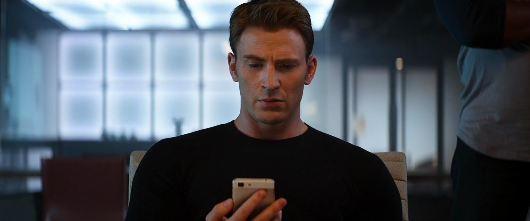 Green Screen Meme Template of Steve Rogers looking at his phone and saying "I have to go" and leaves the room to go to the staircase and process what he saw