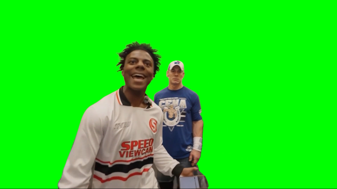 Green Screen Meme Template of IShowSpeed walking into a room looking for John Cena and asking people where John Cena is but can't find him.