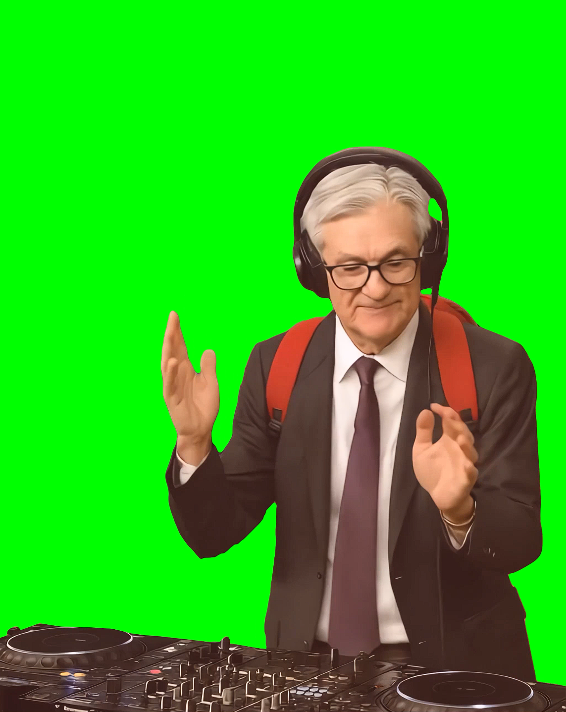 Green Screen Meme Template of an AI video rendition of the Chair of the Federal Reserve of the United States, Jerome Powell made by @Backpack on x.com