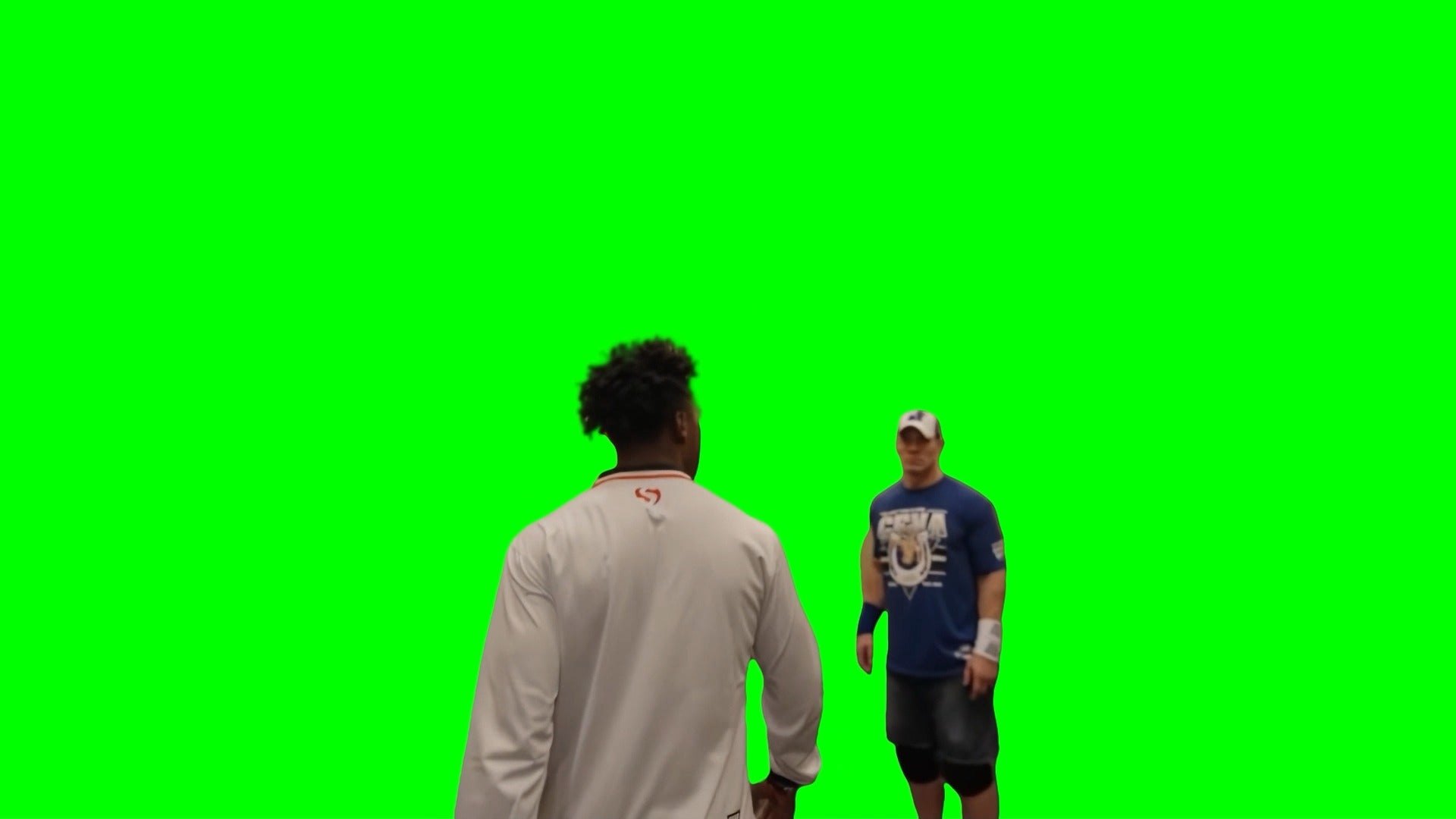 Green Screen Meme Template of John Cena Shouts at IShowSpeed and scares him, and then walks away.