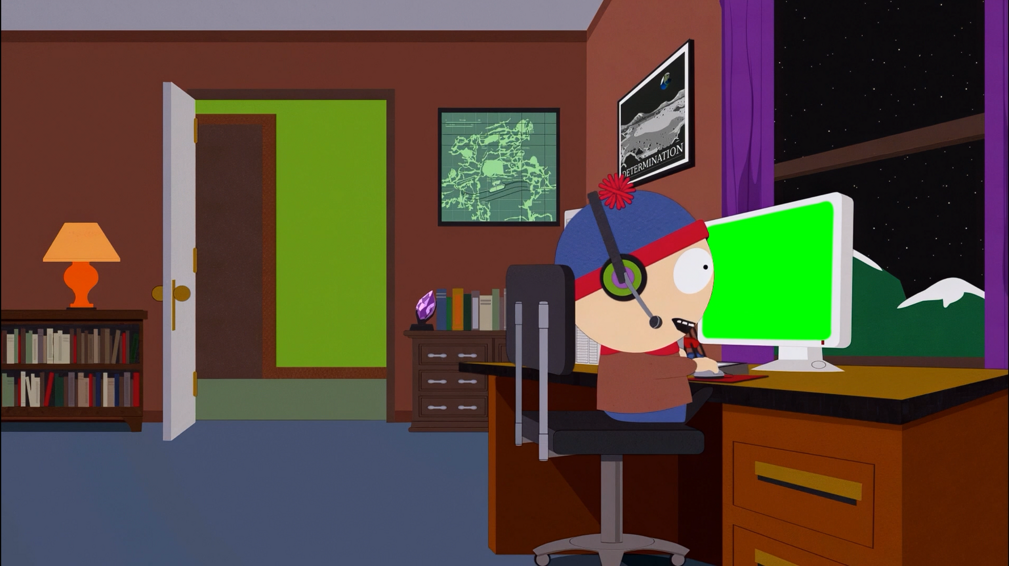 Green Screen Meme Template of Stan Marsh logging in to play World of Warcraft with Kenny, Cartman, and Kyle, where Eric Cartman says "Yeah, its bullcrap. I bet half of these people are Korean!"