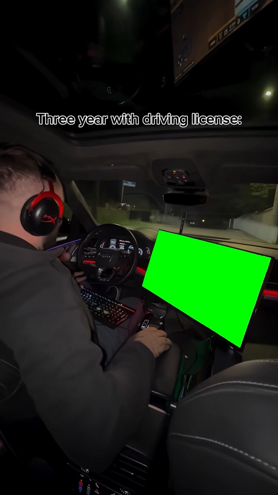 Green Screen Meme Template of a man playing a game on his computer while driving his car
