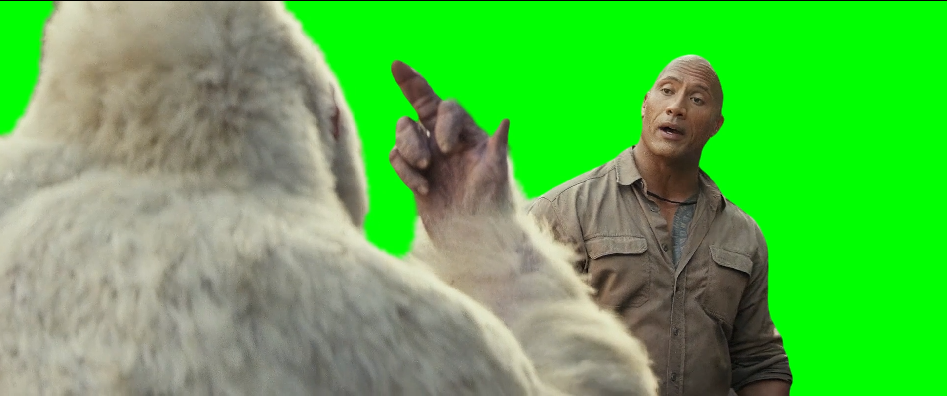 Green Screen Meme Template of George the Albino gorilla showing his middle finger to The Rock in the Rampage movie