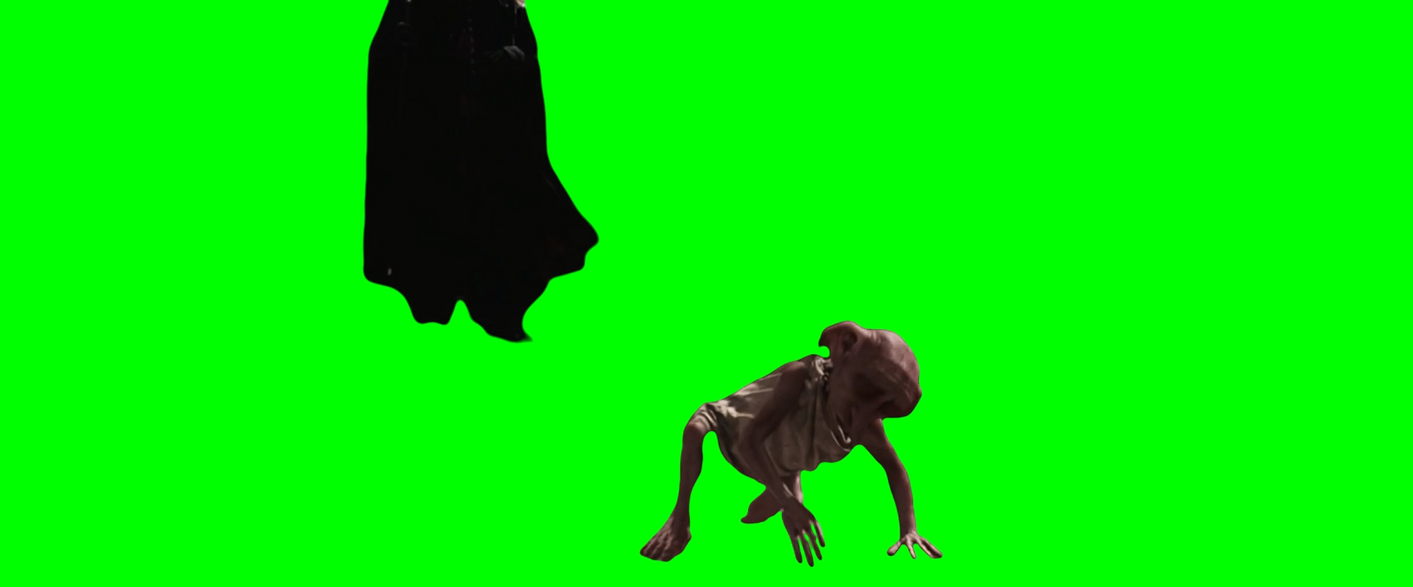 Green Screen Meme Template of Dobby getting kicked in the back by Lucius Malfoy when exiting Headmaster's room