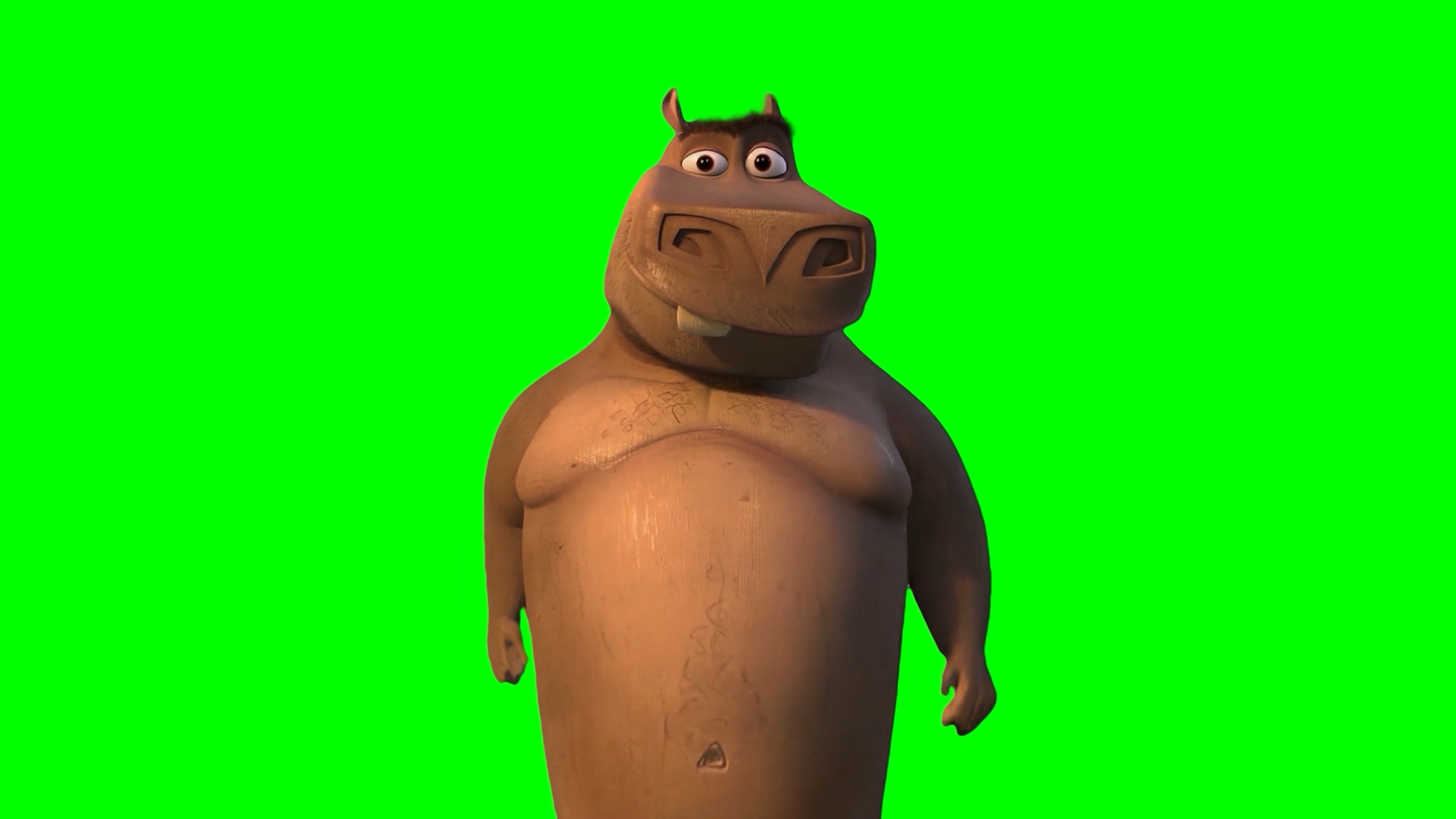 Green Screen Meme Template of Moto Moto the hippo walking towards Gloria in the Madagascar 2 movie