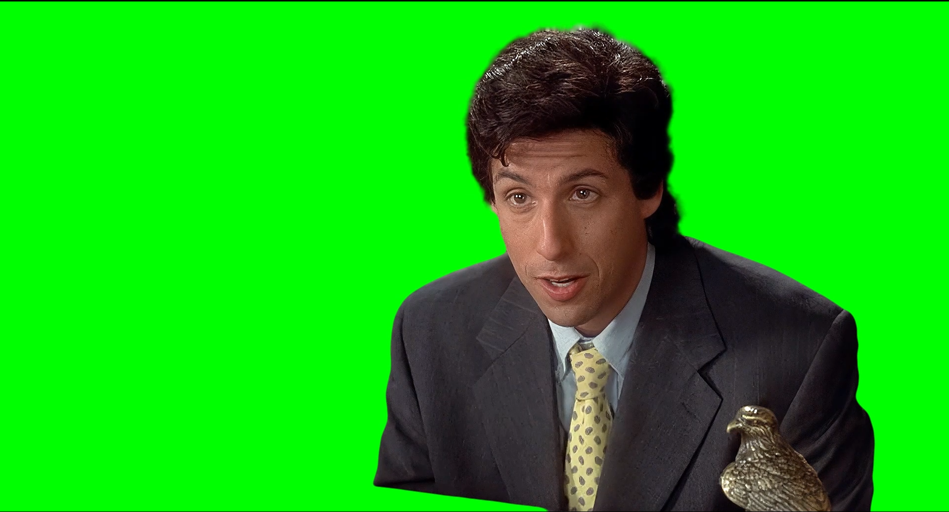 Green Screen Meme Template of Adam Sandler saying "I'm a big fan of money"