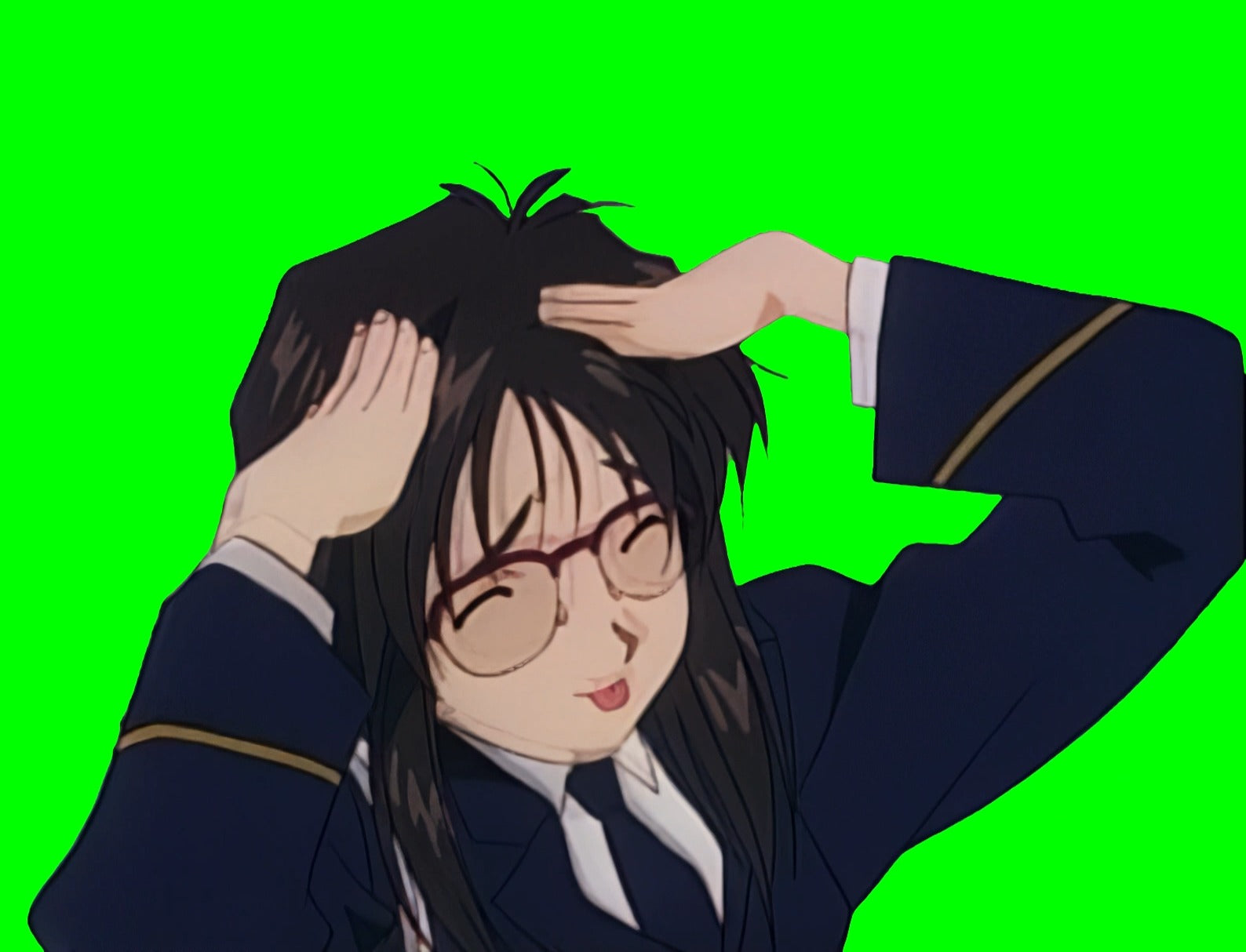 Green Screen Meme Template of Anime girl named Yoriko Nikaido saying "Ah, Eto... Bleh!" after she makes a mistake in the police academy