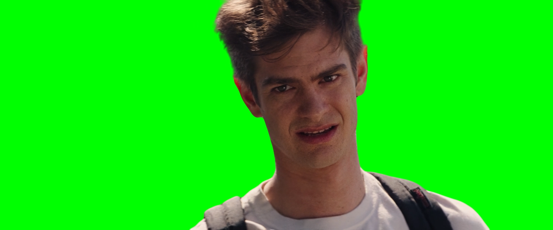 Green Screen Meme Template of Andrew Garfield staring at Captain George Stacy in The Amazing Spider-Man 2 movie