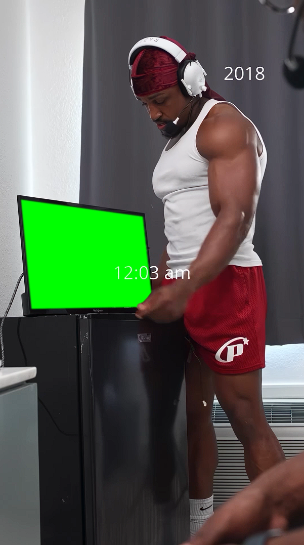 Green Screen Meme Template of Ashton Hall throwing his controller at his TV while raging at a video game and then doomscrolling through Instagram/TikTok