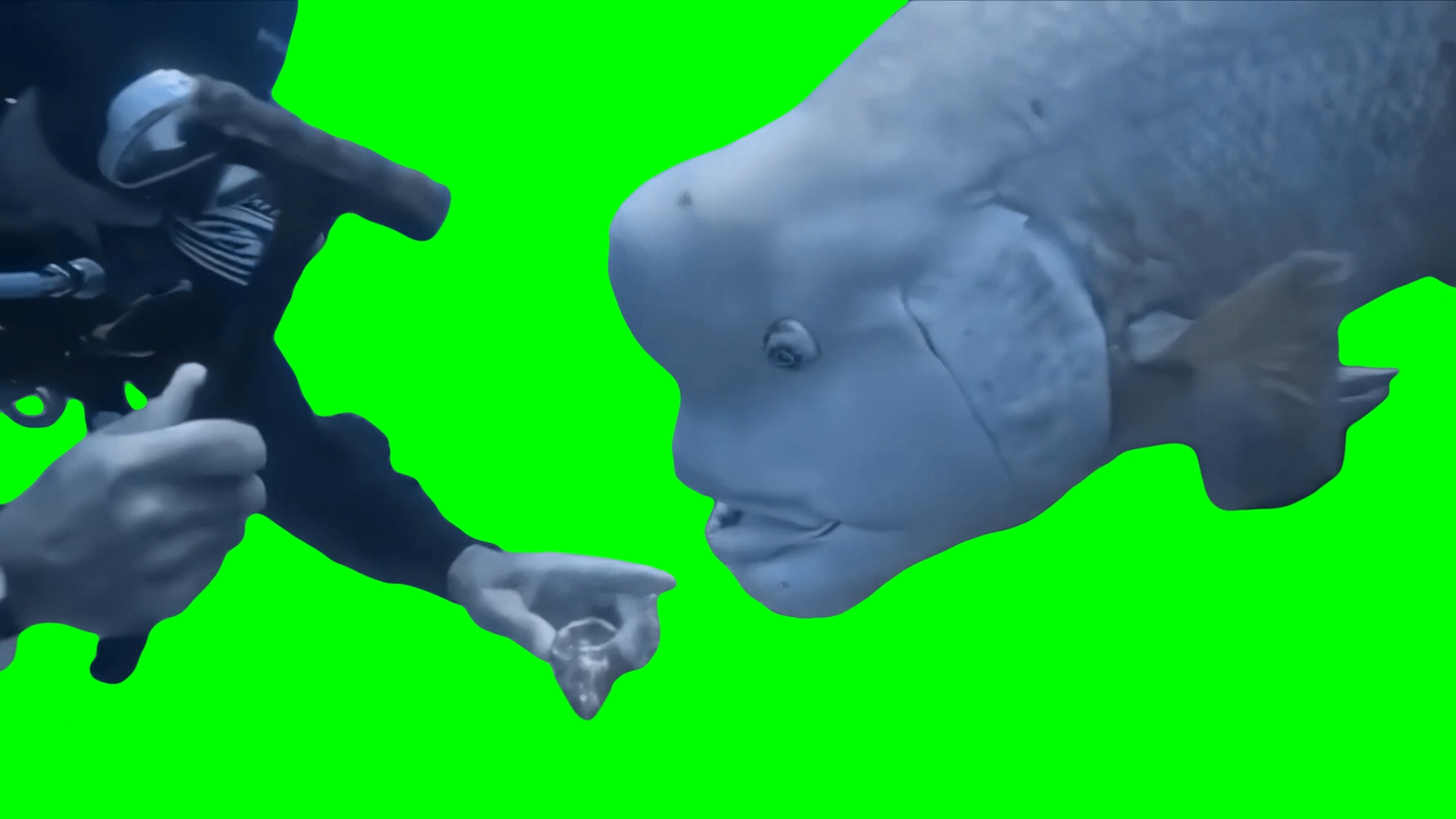 Green Screen Meme Template of Big Forehead Fish watching Diver hammer a rock meme