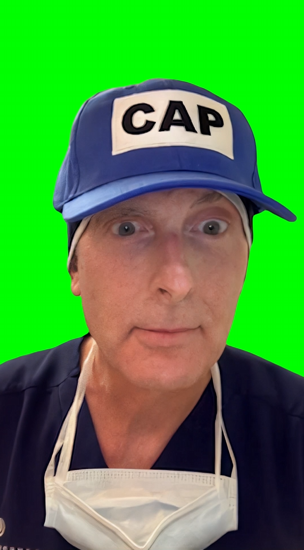 Green Screen Meme Template of the Cap Doctor meme wearing a cap that says "CAP"