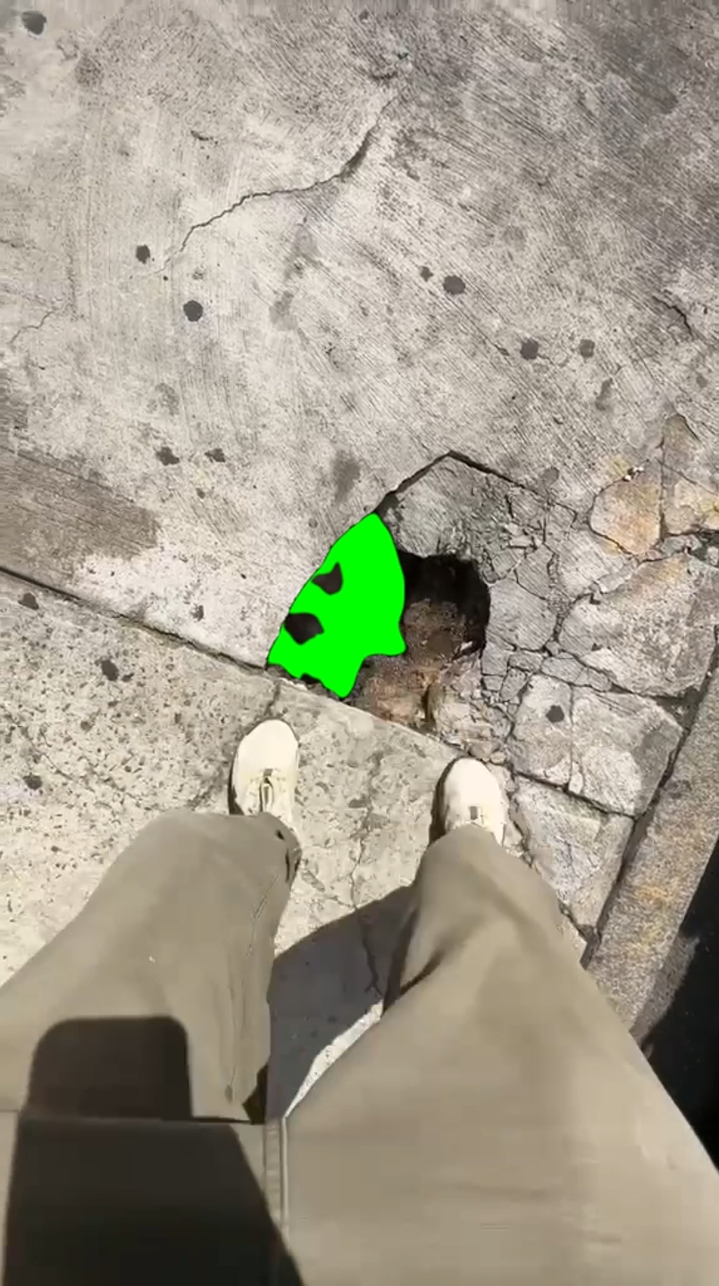 Green Screen Meme Template of Casey Neistat finding a sinkhole while walking in a New York City sidewalk