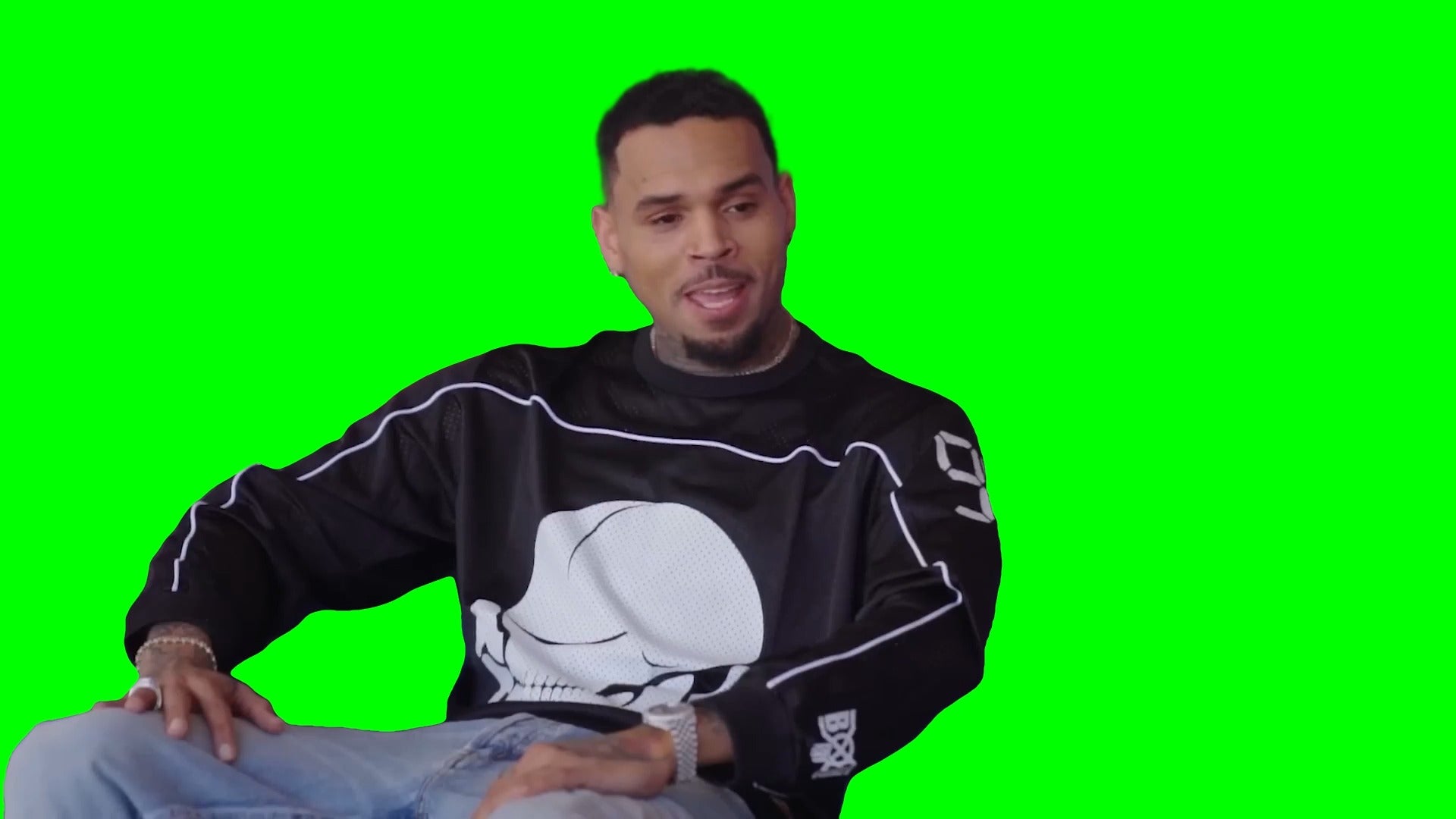 Green Screen Meme Template of Chris Brown saying "FUCK NO!" when Funny Marco asked if he would date Marco's sister and that she looks exactly like him, Chris also says "Hell no!" during an interview