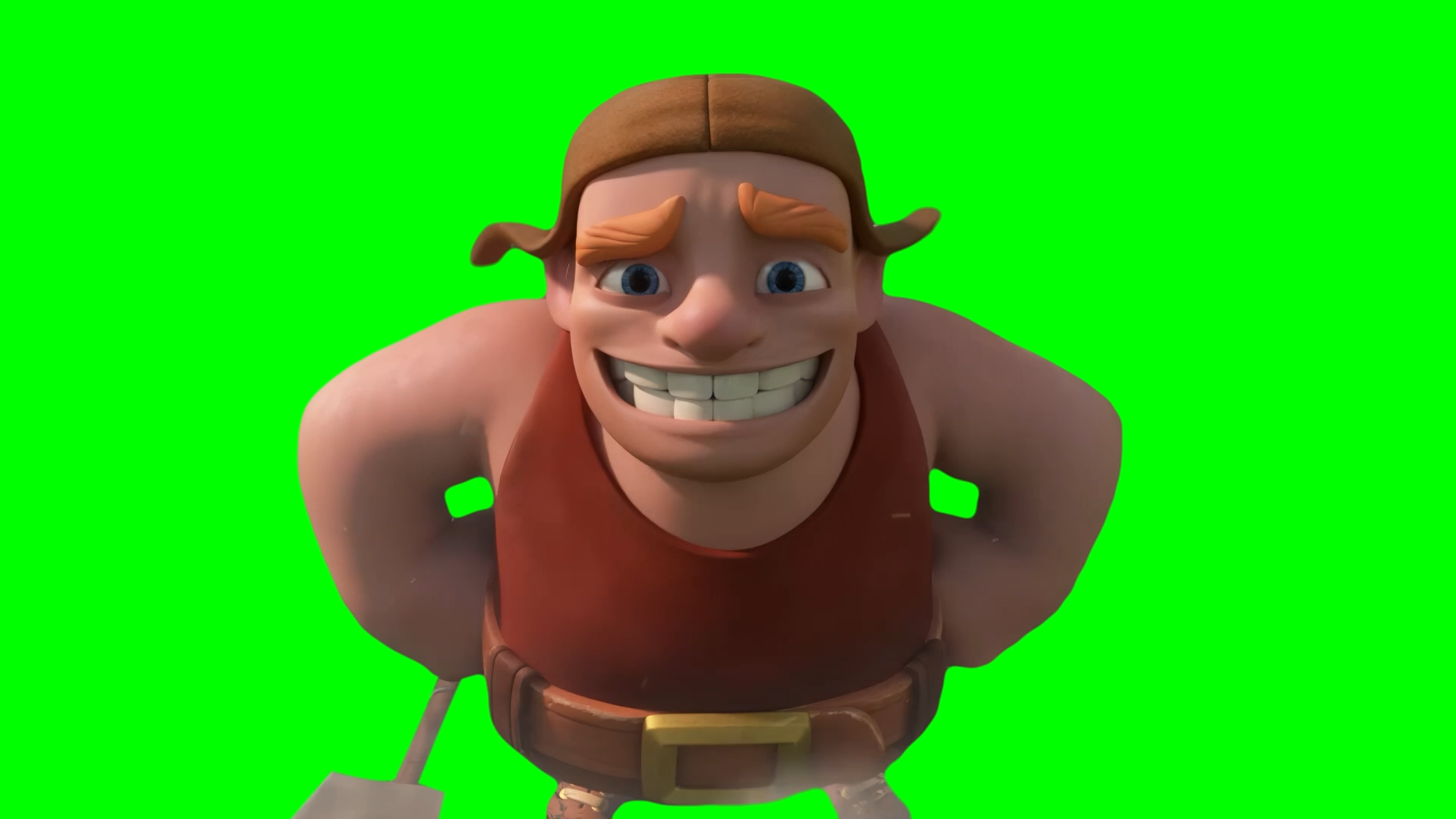Green Screen Meme Template of a builder from Clash of Clans looking at the Town Hall he built get destroyed immediately, leaving him shocked