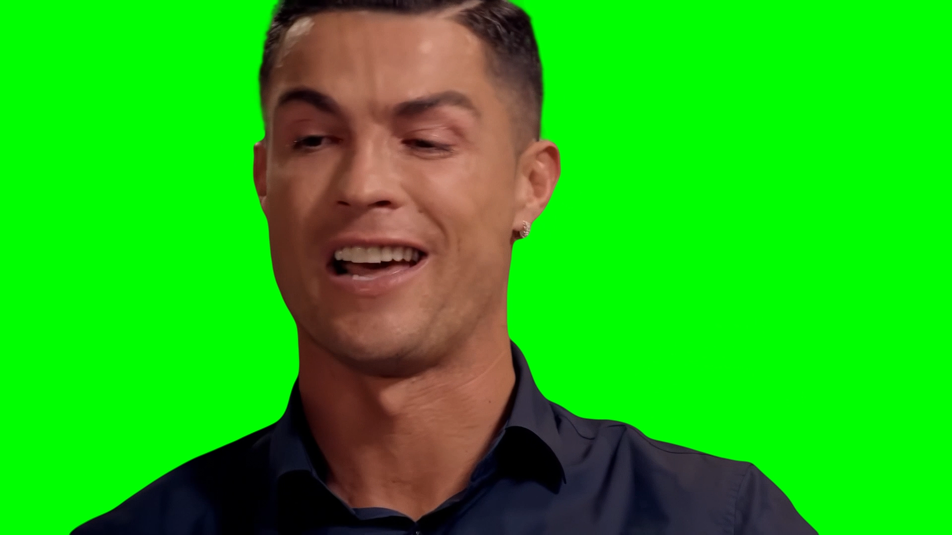 Green Screen Meme Template of Cristiano Ronaldo getting emotional and crying after watching a video of his father while saying "I never saw the video" during an interview with Piers Morgan