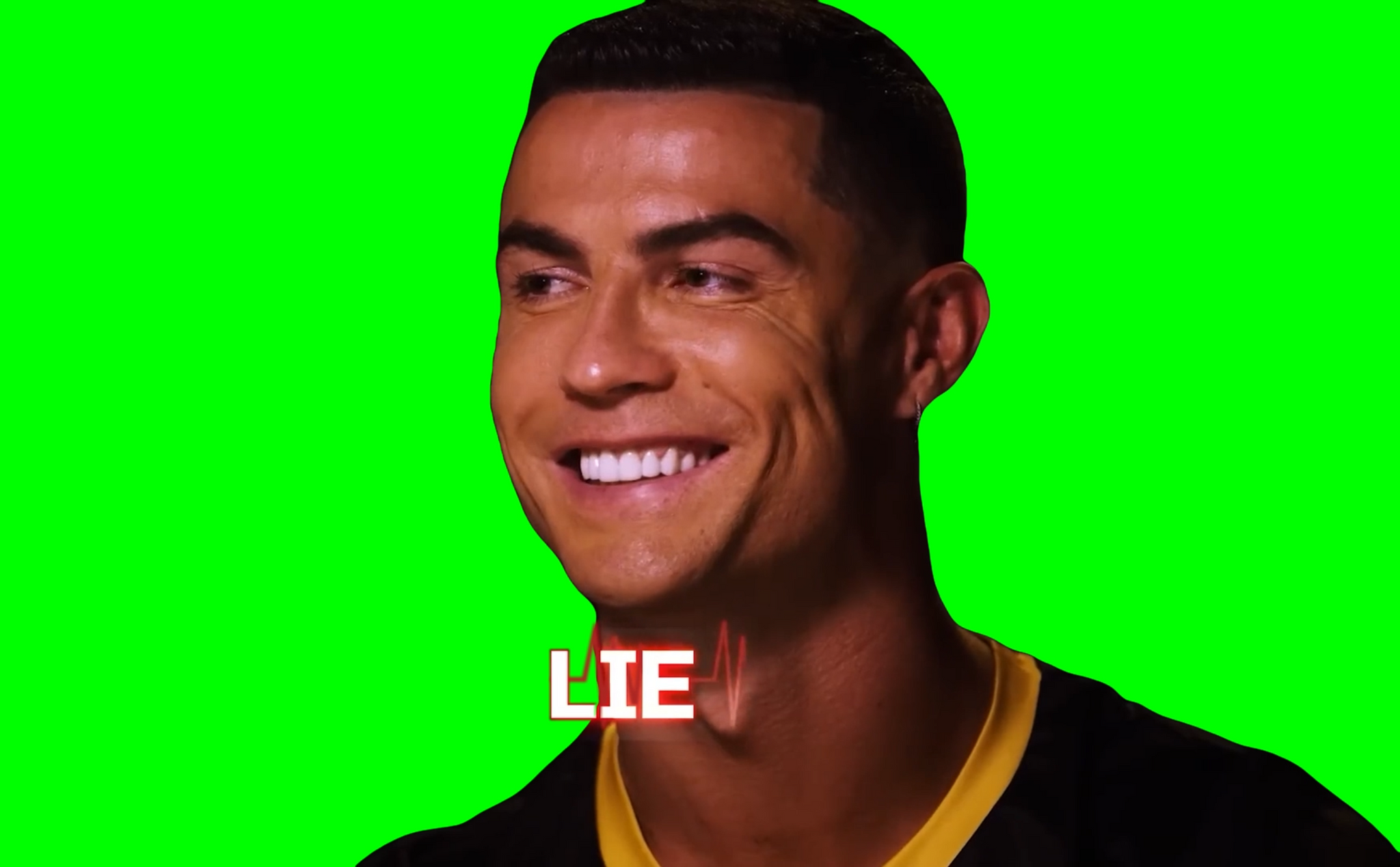 Green Screen Meme Template of Cristiano Ronaldo lying during a Lie Detector Test when asked if he snores while sleeping