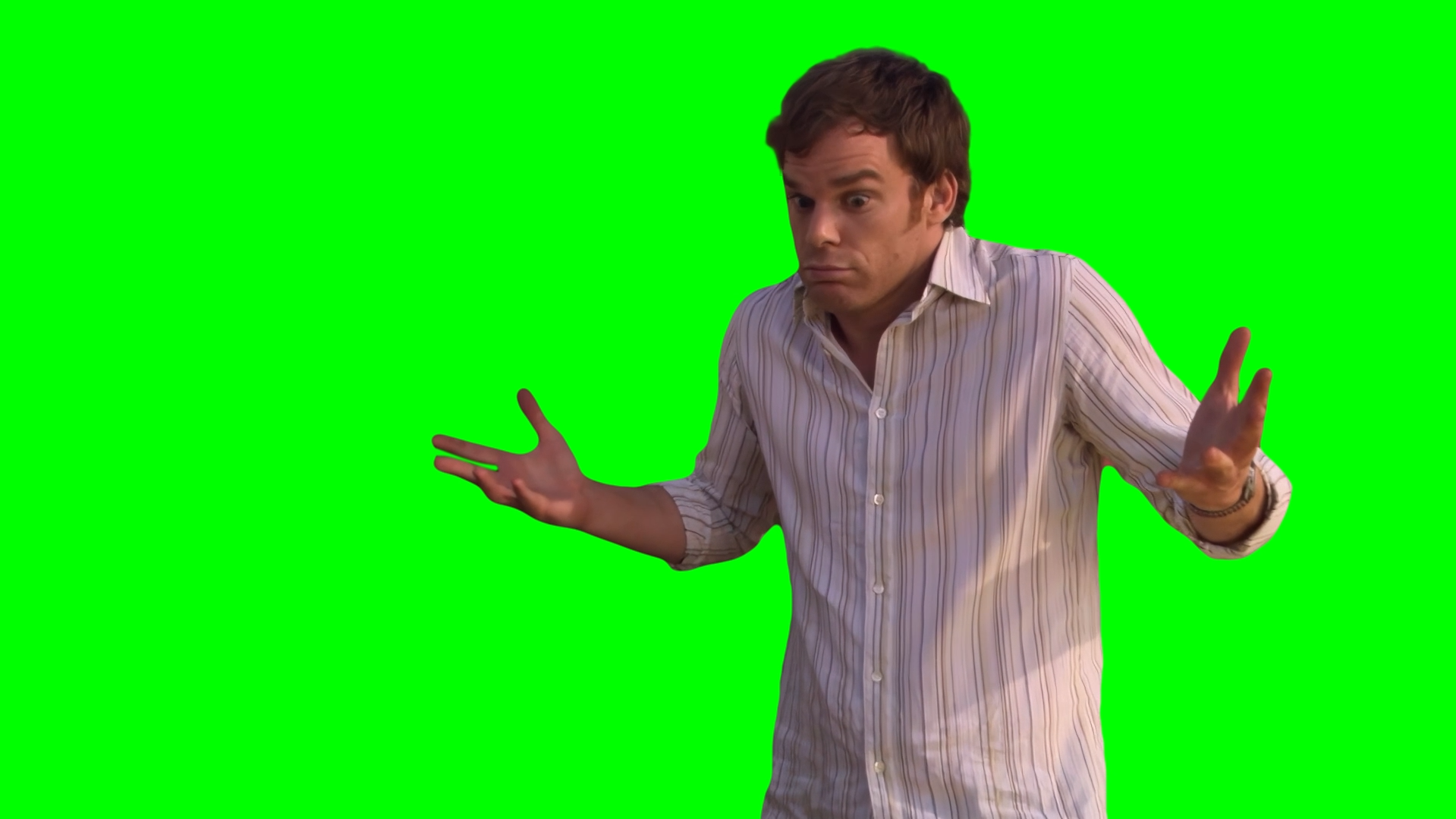 Green Screen Meme Template of Dexter Morgan shrugging when asked about Rita's neighbor's dog