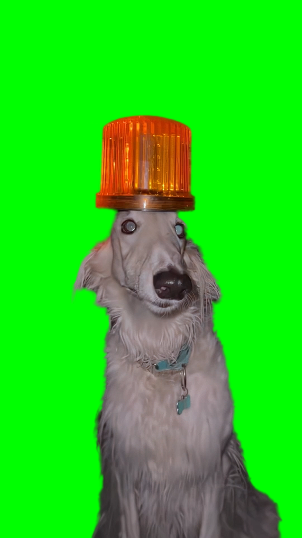 Green Screen Meme Template of a Dog with Siren Lamp on the top of his head while he is outside