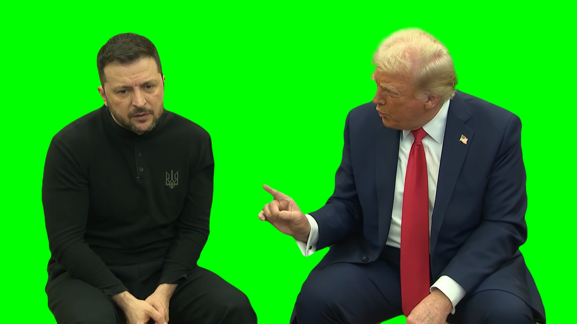 Green Screen Meme Template of Zelensky and Donald Trump arguing over the war in Ukraine in the Oval Office of the White House