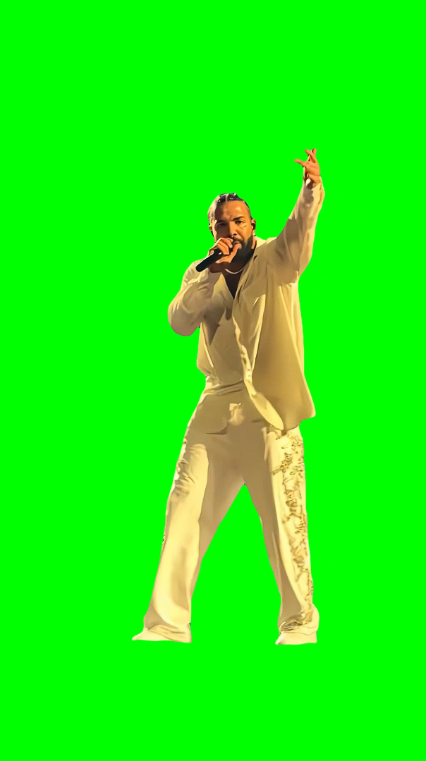 Green Screen Meme Template of Drake performing his verse from Sicko Mode and dancing in a very goofy, corny, silly way during a live performance