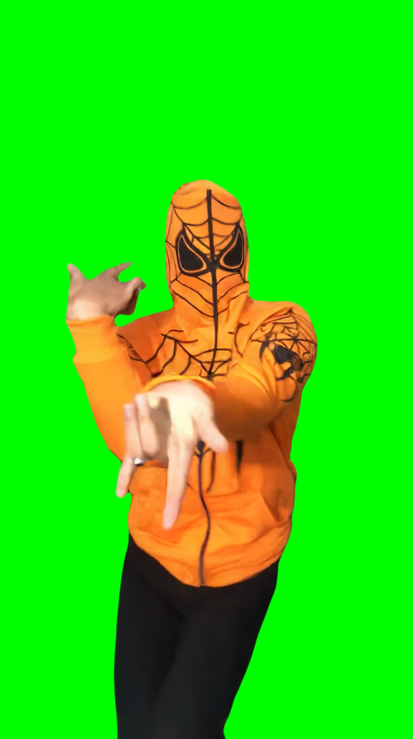 Green Screen Meme Template of an Egyptian man in an orange Spider-Man hoodie dancing, aka tiri tiriri meme
