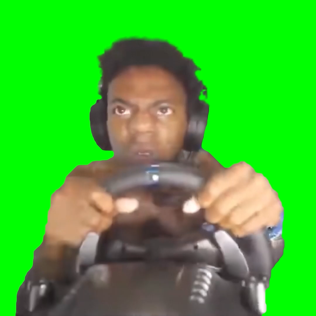 Green Screen Meme Template of IShowSpeed screaming "FASTER! I gotta go fast!" and crashing his F1 racecar