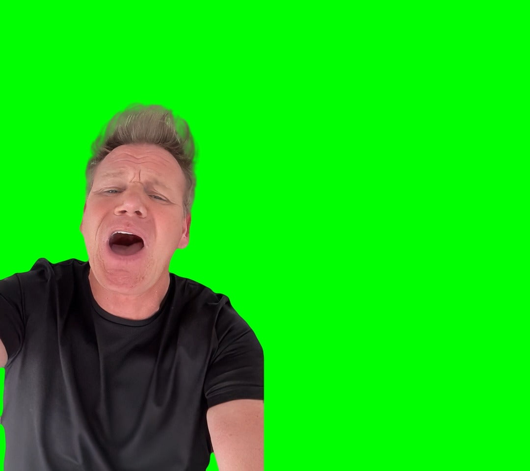 Green Screen Meme Template of Gordon Ramsay reacting to a video and screaming "NOOO!"