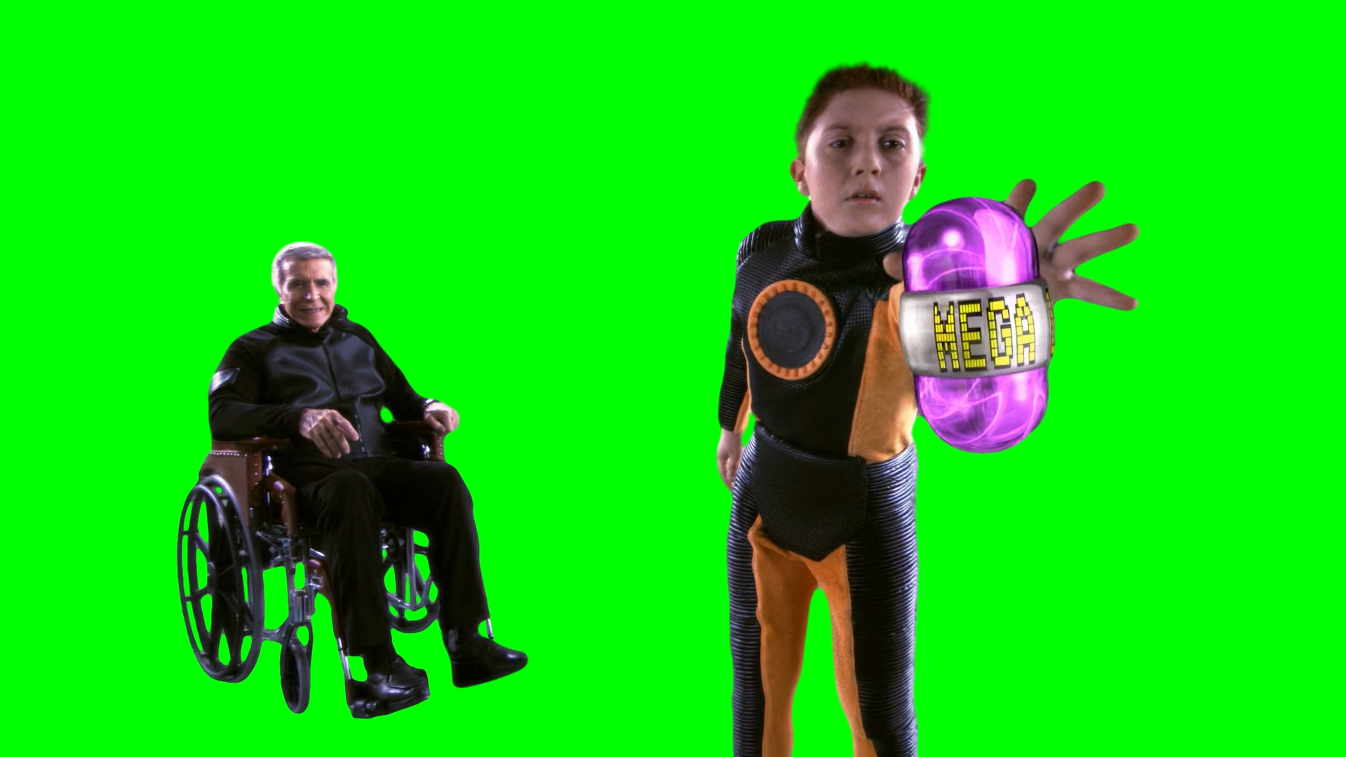 Green Screen Meme Template of Grandpa getting a Power Up meme in the Spy Kids 3-D: Game Over movie