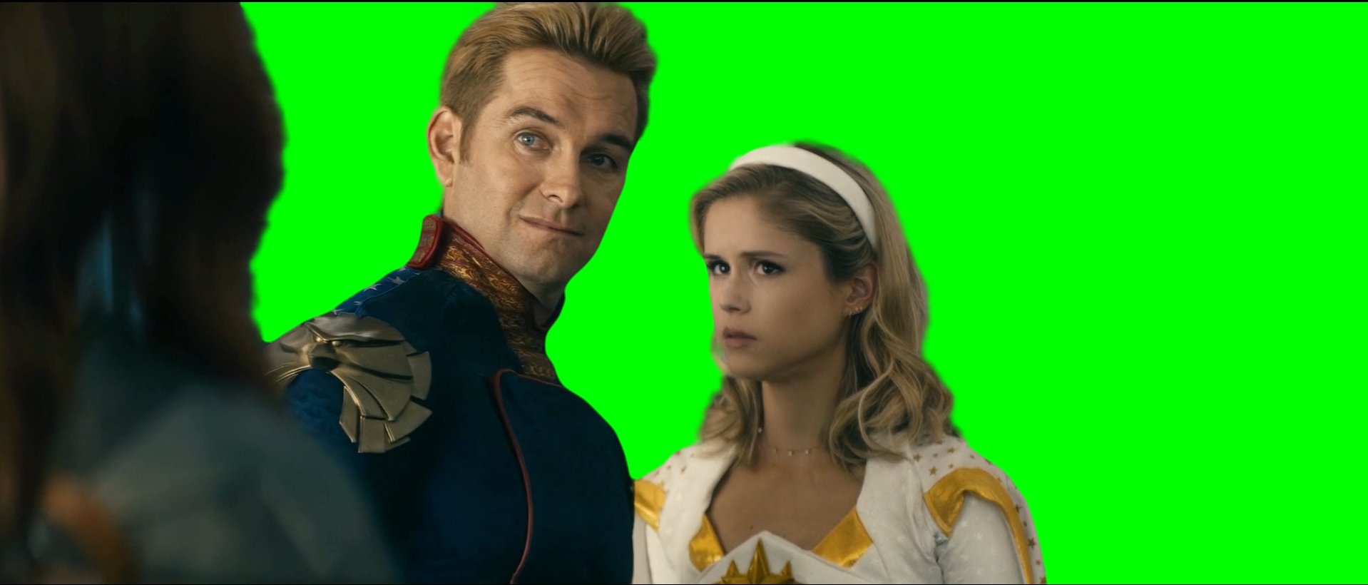 Green Screen Meme Template of Homelander saying "WOW!" to Queen Maeve in The Boys TV show