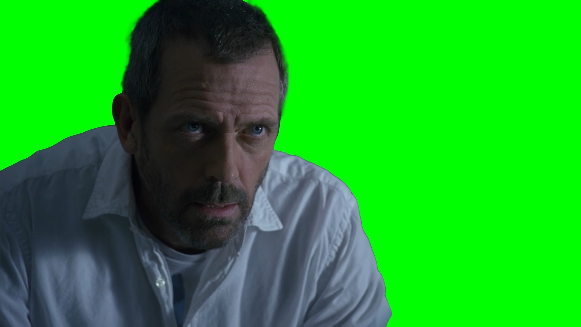Grreen Screen Meme Template of Dr. Gregory House MD shouting "I NEED THE DRUGS!" to a patient after being told "We're in textiles"