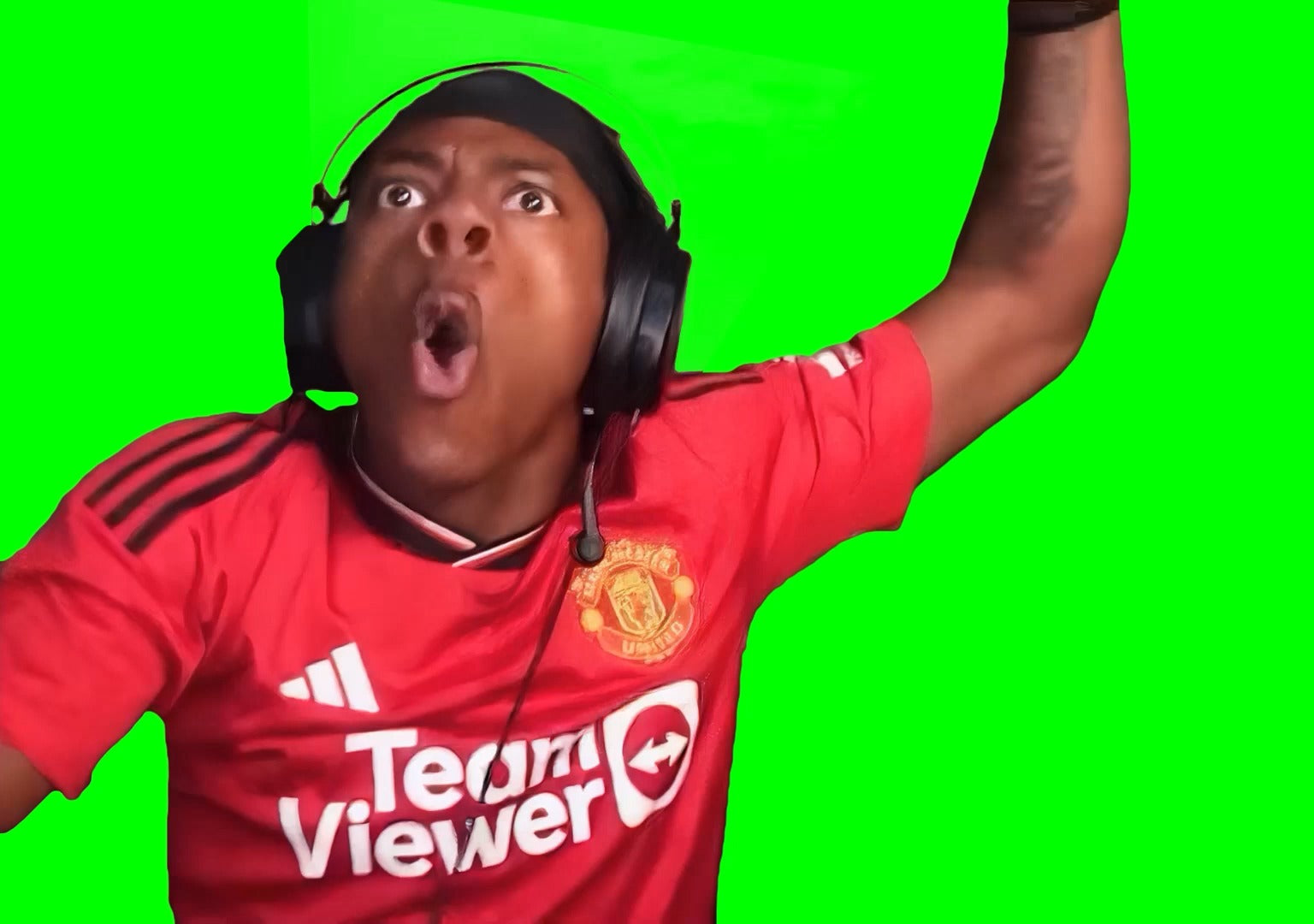 Green Screen Meme Template of IShowSpeed reacts to KSI's song and says "TURN THAT SHIT OFF!"