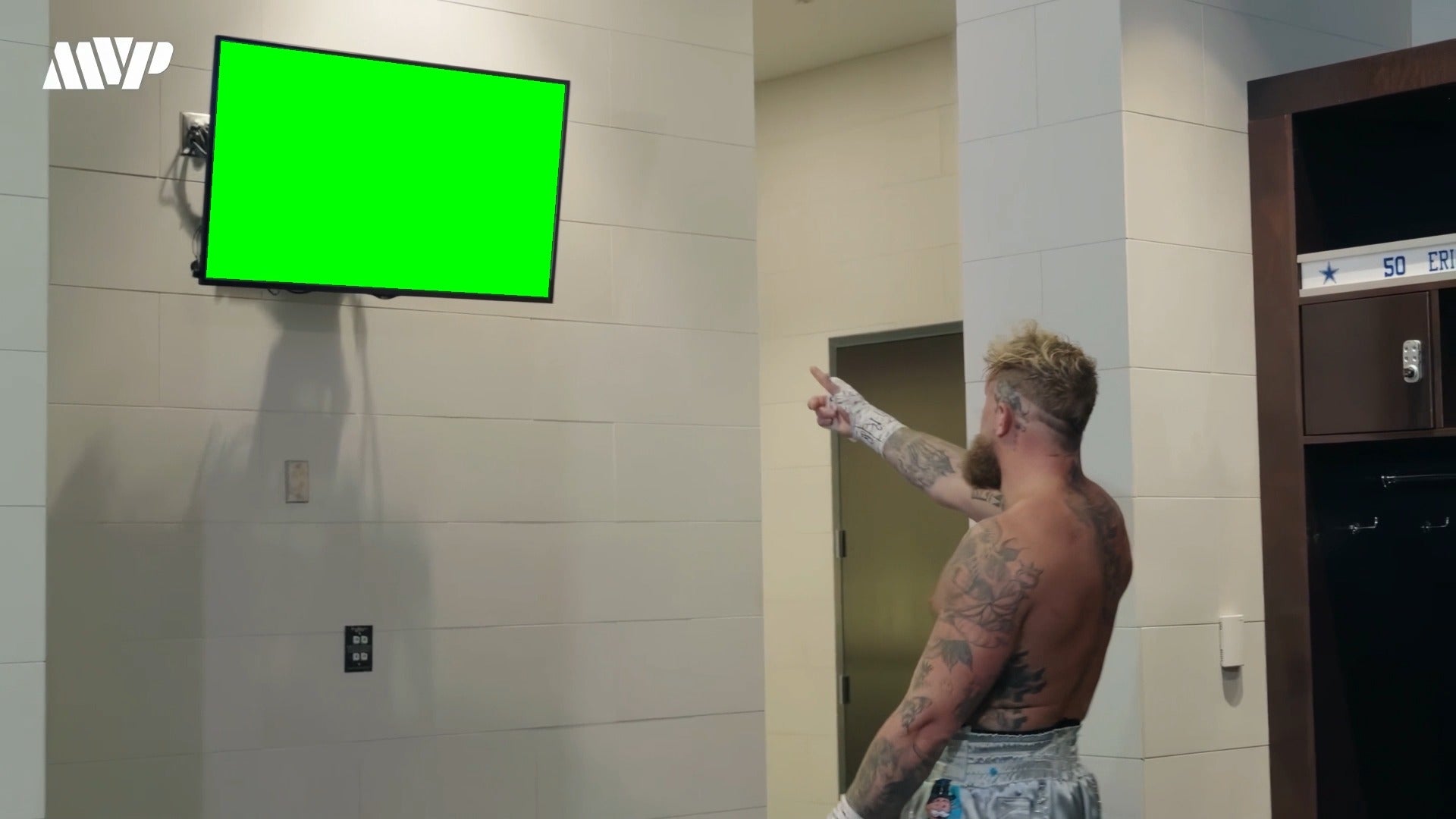 Green Screen Meme Template of Jake Paul saying "BRO, WHAT THE F***?!" at a TV screen after seeing Mike Tyson's butt on Netflix TV and with Logan Paul saying "Damn!"