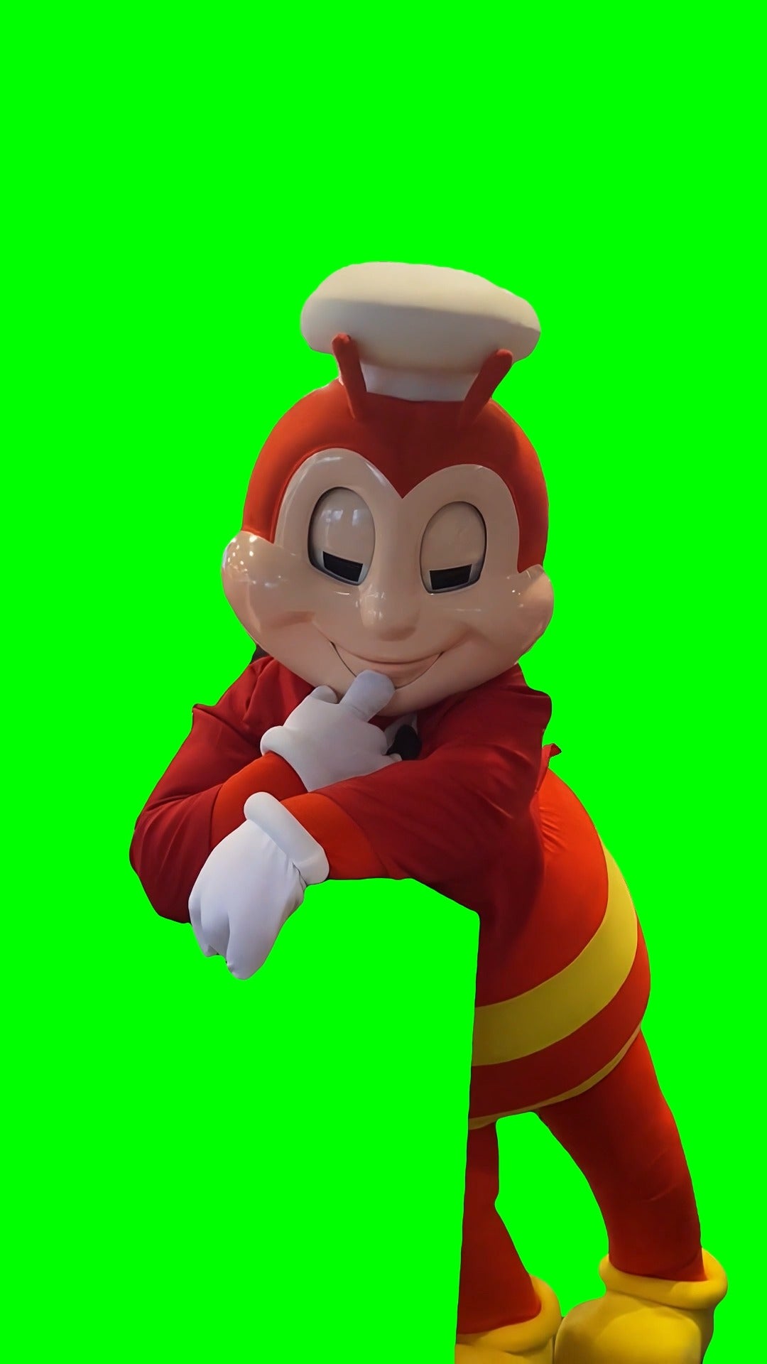 Green Screen Meme Template of a Jollibee mascot is looking at the camera and flirting heavily, trying to seduce them.