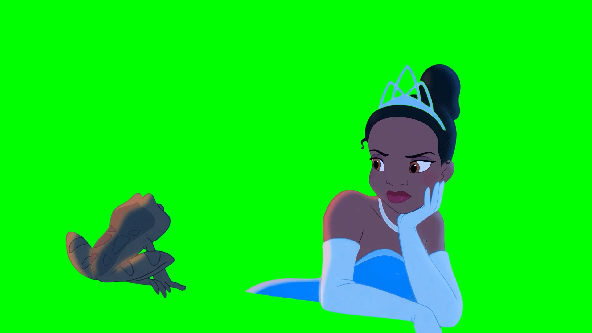 Green Screen Meme Template of the Frog saying "Kissing would be nice, yes?" to Princess Tiana in The Princess and the Frog movie