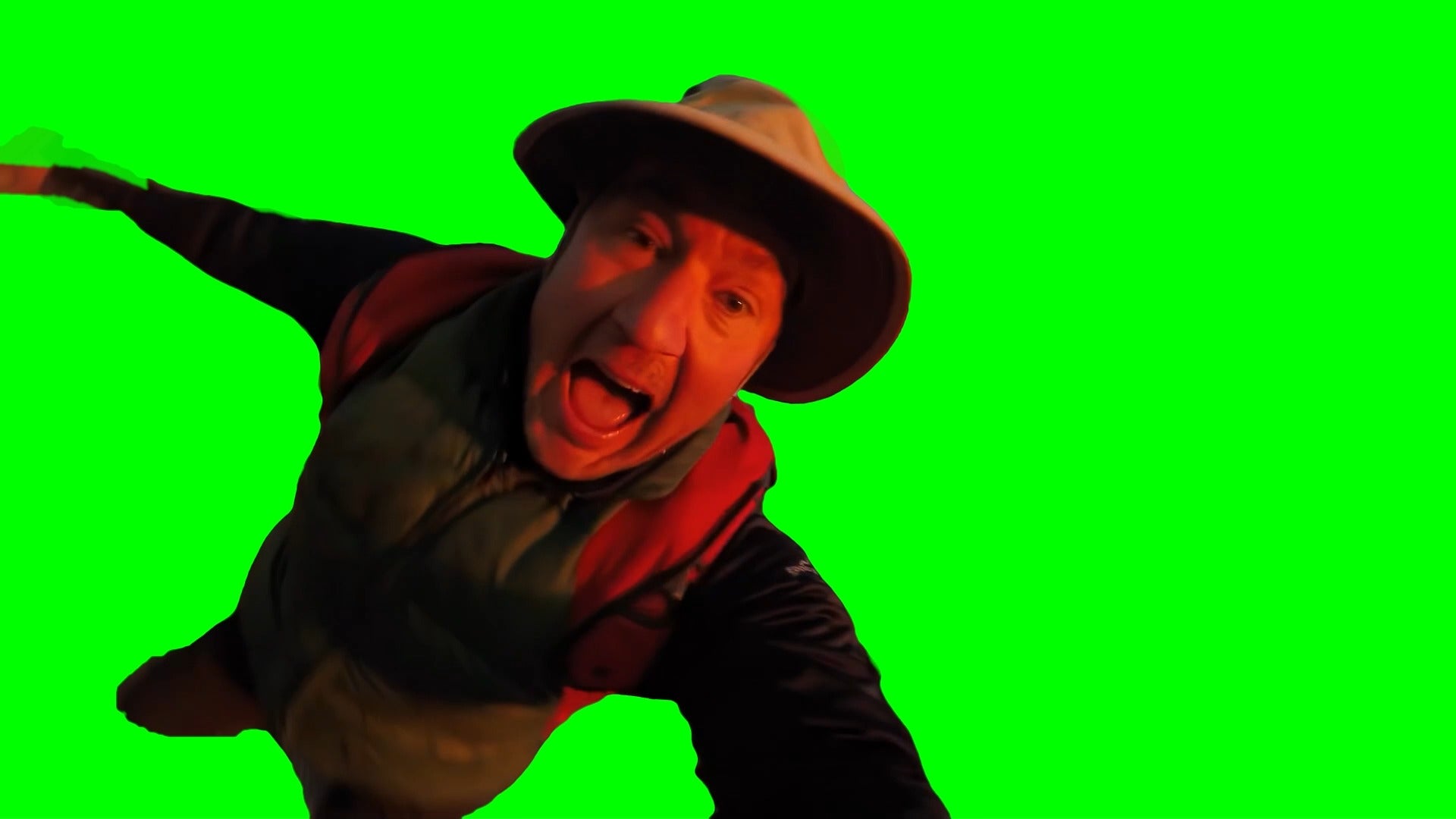 Green Screen Meme Template of a Man Falling off a cliff and screams, demonstrating what not to do when a person is near a cave