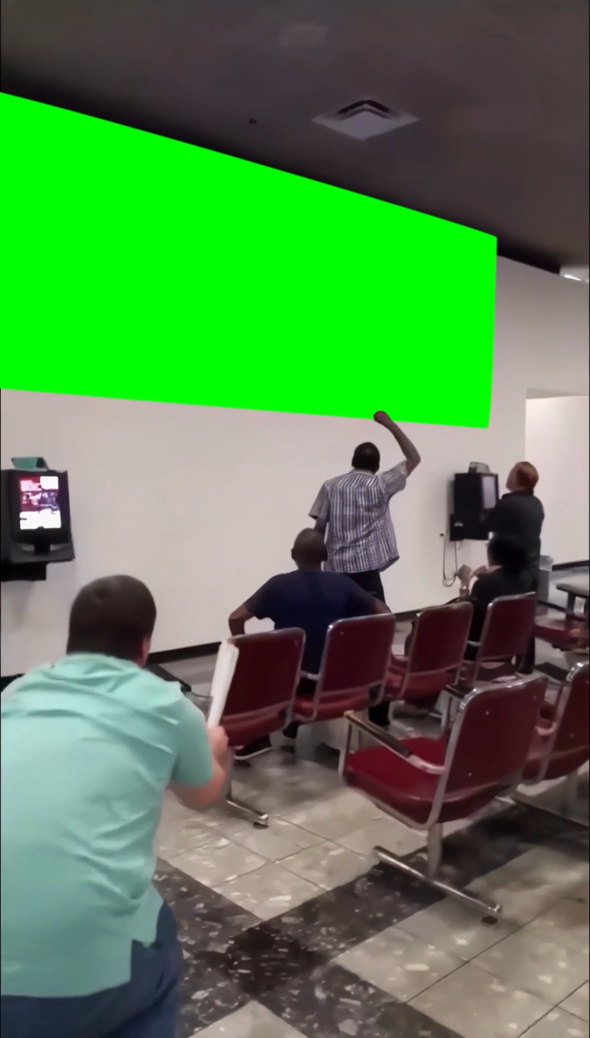 Green Screen Meme Template of TV screens during a Horse Race with a man spanking himself after getting too excitedSource: https://x.com/will_1889/status/1371452491460714498
