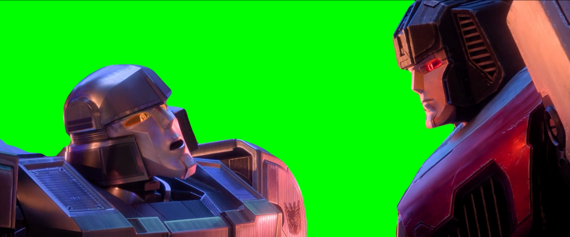 Green Screen Meme Template of Megatron Headbutting Starscream in the Transformers One movie