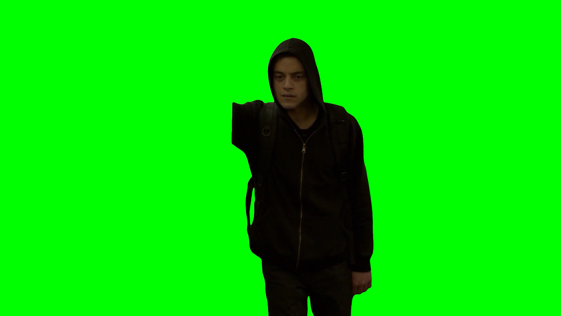 Green Screen Meme Template of Mr. Robot saying "What the hell am I doing? This chick is out of her mind."