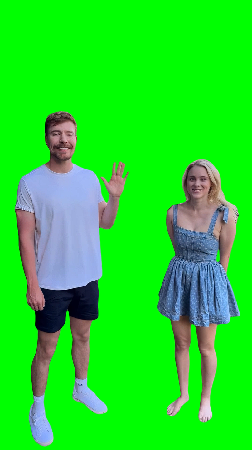 Green Screen Meme Template of MrBeast joining the TikTok "5 Second Run Challenge" trend with his fiancée Thea Booysen and he manages to catch her