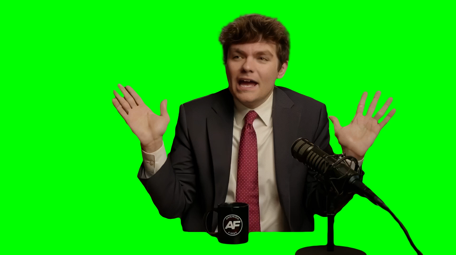 Green Screen Meme Template of Nick Fuentes saying "CAN A NIGGA LIVE?! PLEASE, THIS COUNTRY SUCKS!" on his podcast ranting about the American people