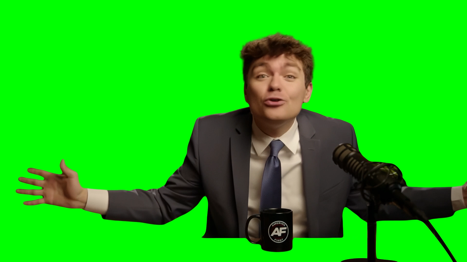 Green Screen Meme Template of Nick Fuentes saying "I got niggas", "They're not like us" and "I love my niggas" in his podcast