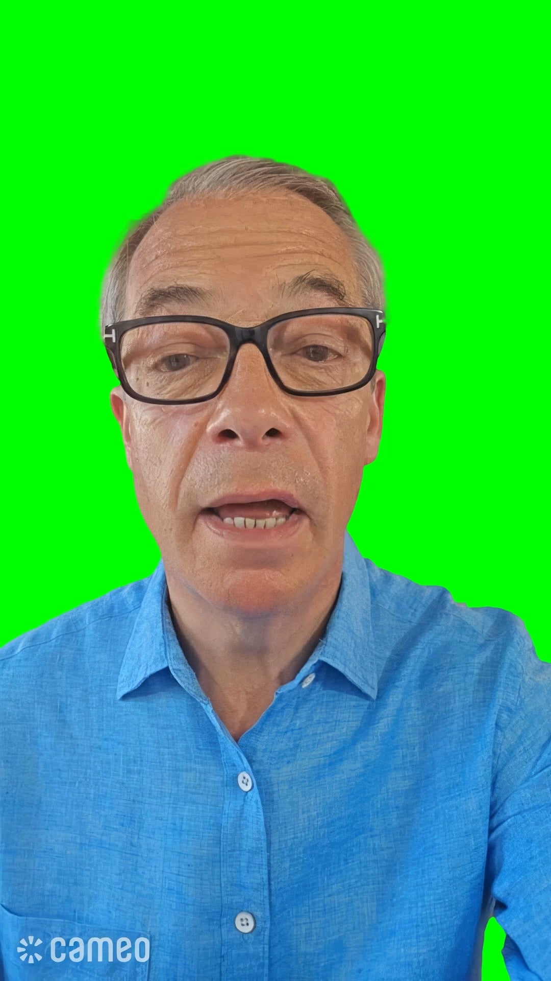 Green Screen Meme Template of Nigel Farage saying "Sigma Sigma on the Wall, who's the Skibidiest of them all?"