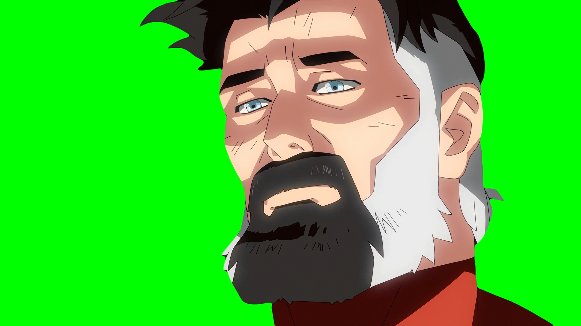 Green Screen Meme Template of Omni-Man looking and staring at a Black Hole in the Invincible TV show