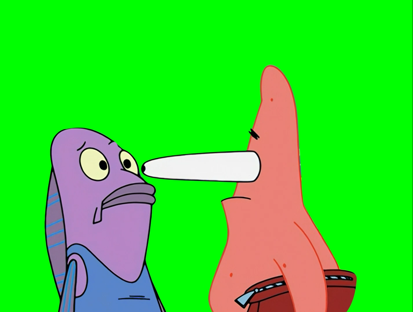 Green Screen Meme Template of Patrick's Eyes Popping Out meme in SpongeBob SquarePantsSource: SpongeBob SquarePants - S03E12aTags: patrick star, spongebob, mr krabs, squidward