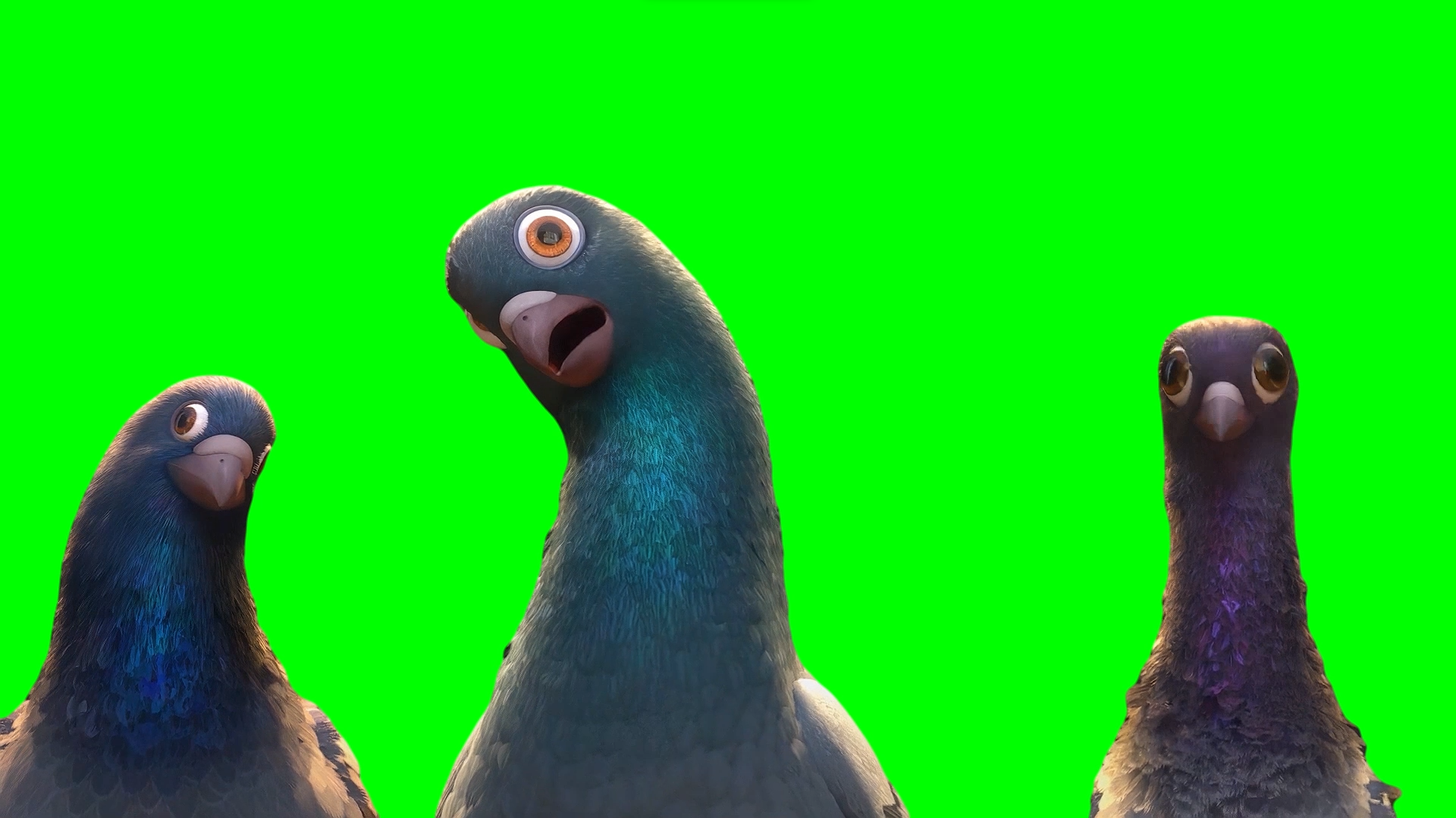 Green Screen Meme Template of a pigeon saying "You Look Familiar" to Bolt the dog in the Bolt movie