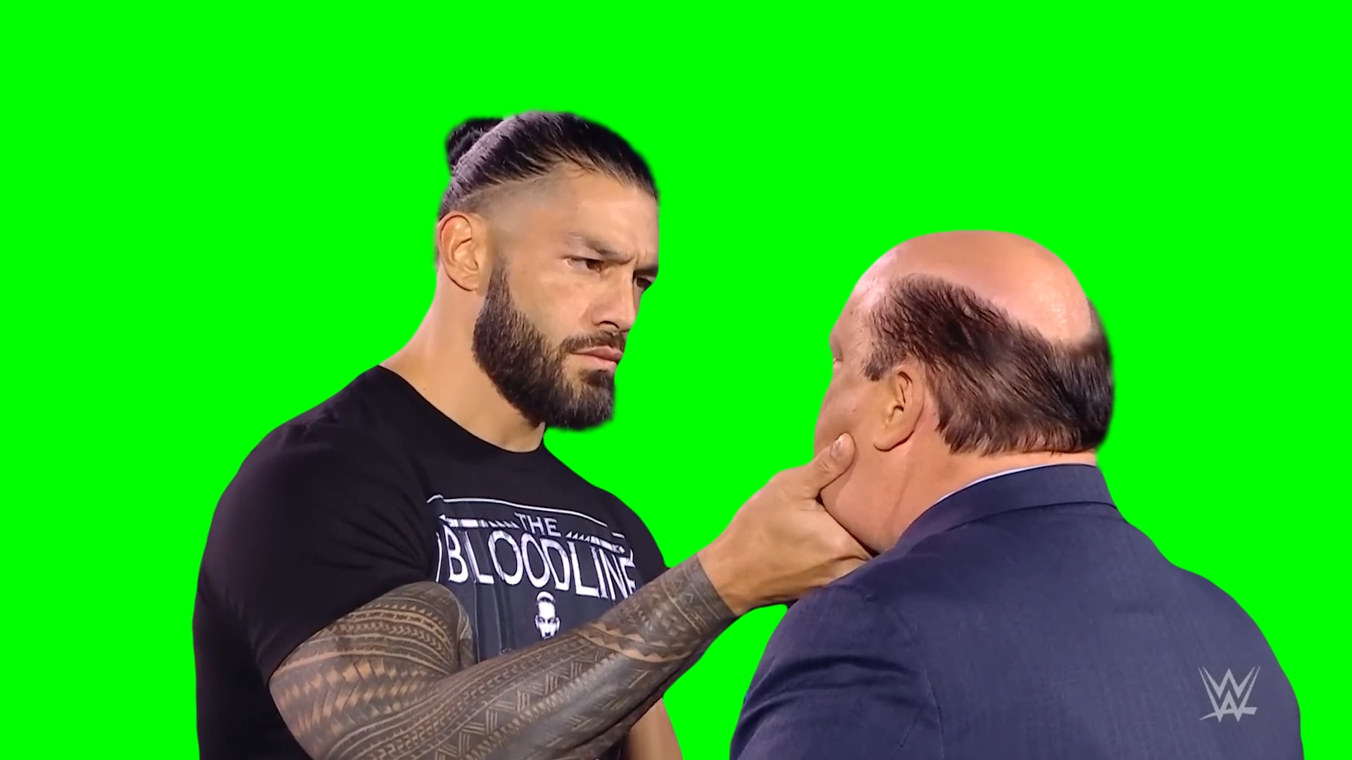 Green Screen Meme Template of Roman Reigns rizzing up Paul Heyman