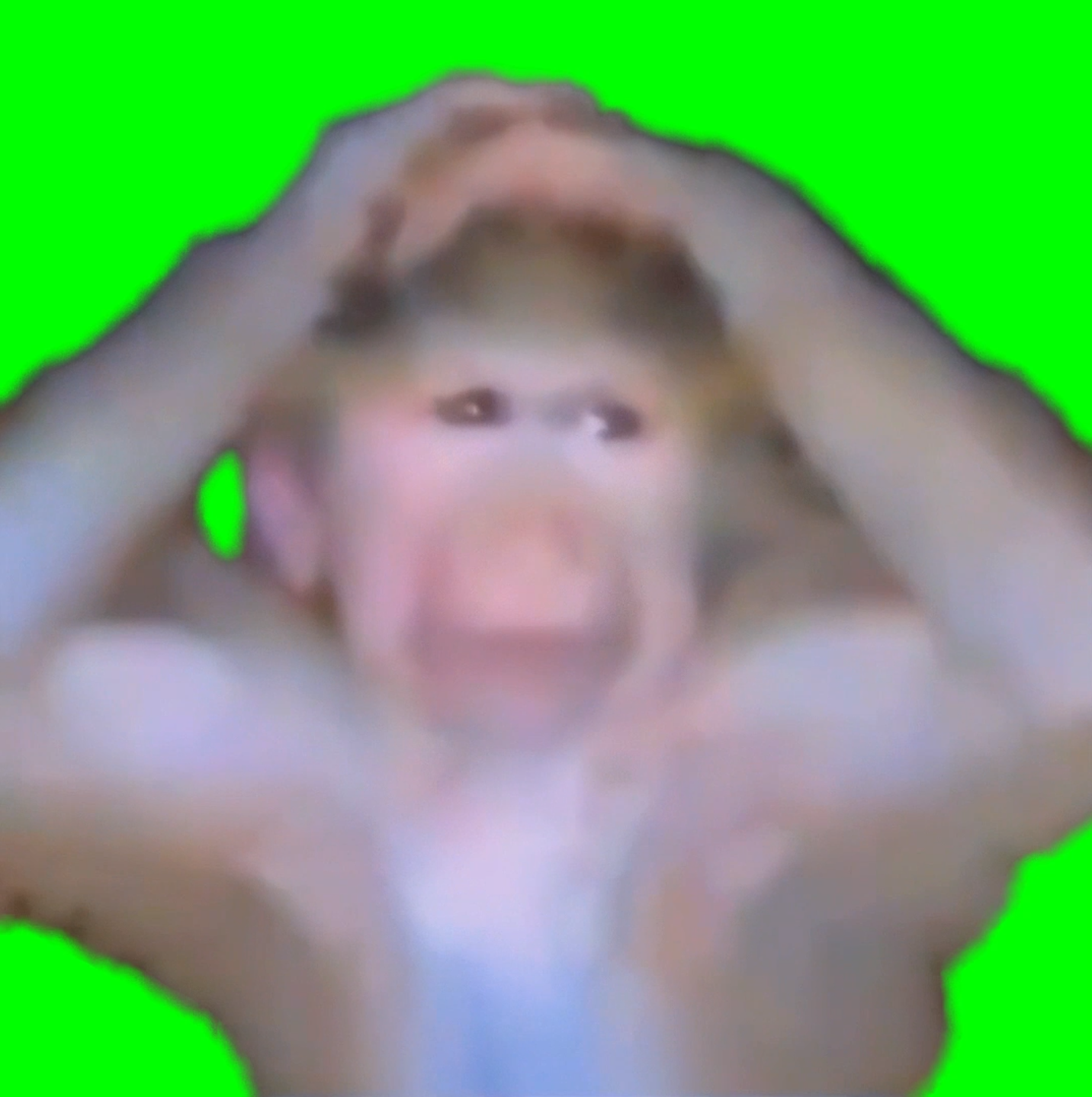 Green Screen Meme Template of a sad monkey putting his hands on top of his head while the song "Rolling in the Deep" by Adele is playing in the background