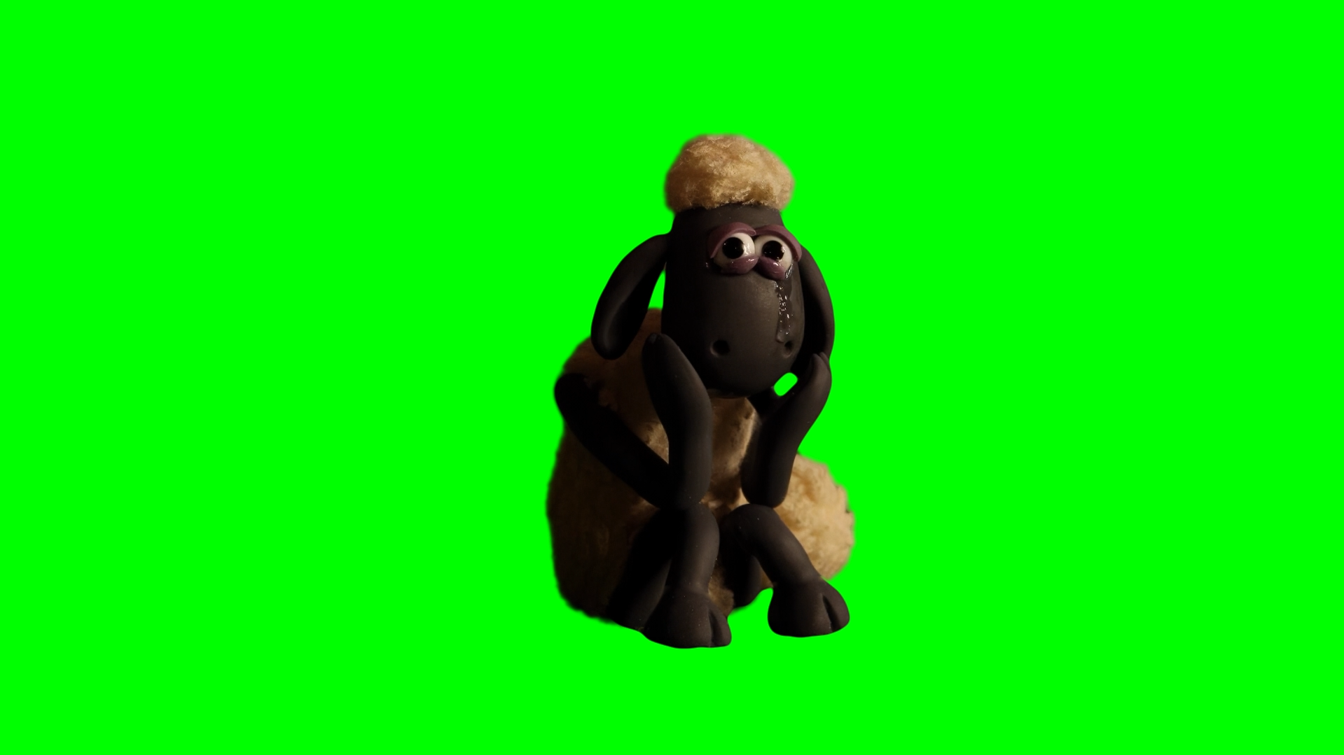 Green Screen Meme Template of Shaun the Sheep sitting behind some hedges and crying when his girlfriend, Lola, is being taken away by a shepherd