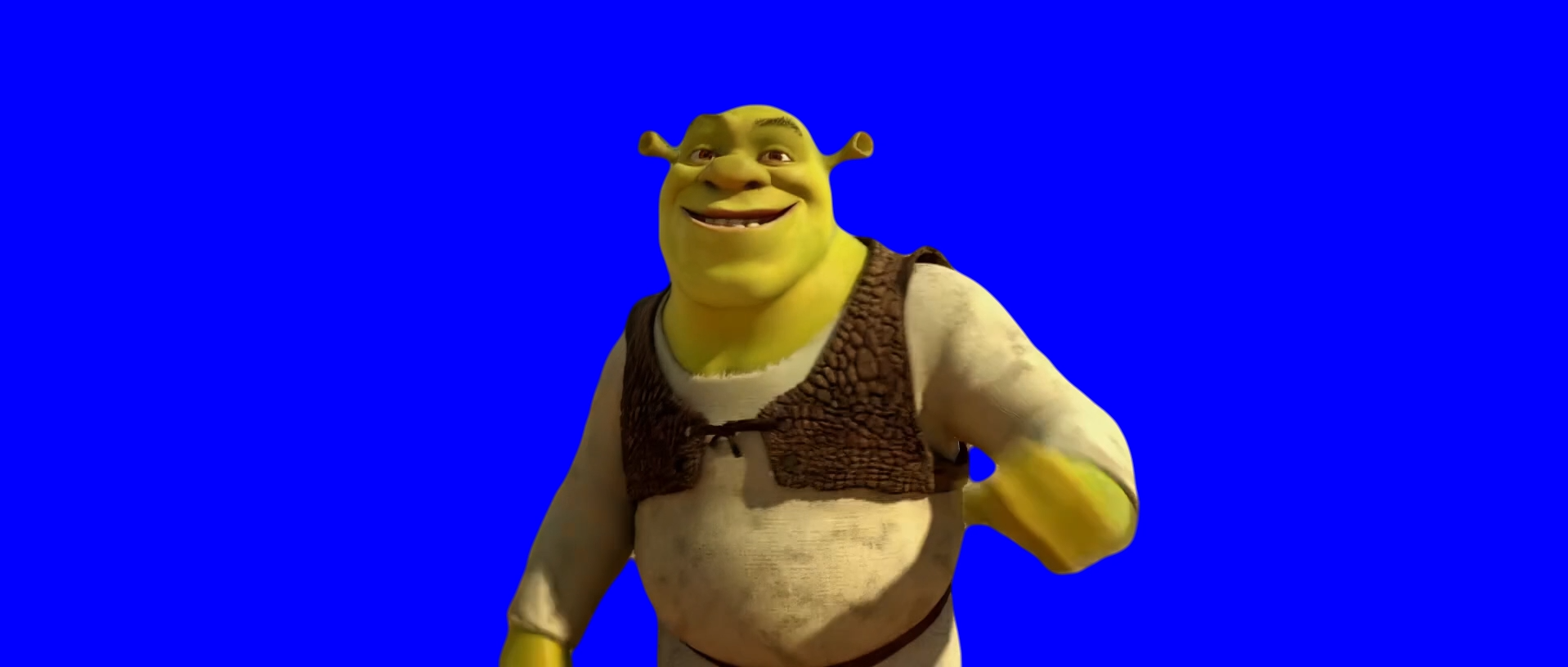 Green Screen Meme Template of Shrek walking and scaring people away in the Shrek 4 movie V2